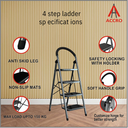 The Mild Steel 4 Step Foldable Ladder by Accro Ladders is designed for tasks that require extra height, stability, and safety. Manufactured from high-grade mild steel, this ladder offers excellent load capacity and long-lasting durability.