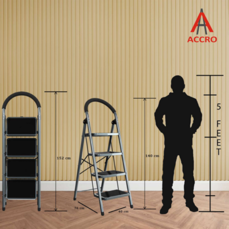 The ladder is engineered with reinforced welding joints and a durable powder-coated finish to withstand heavy-duty use. Anti-slip rubber shoes at the base ensure excellent floor grip and prevent movement during operation.